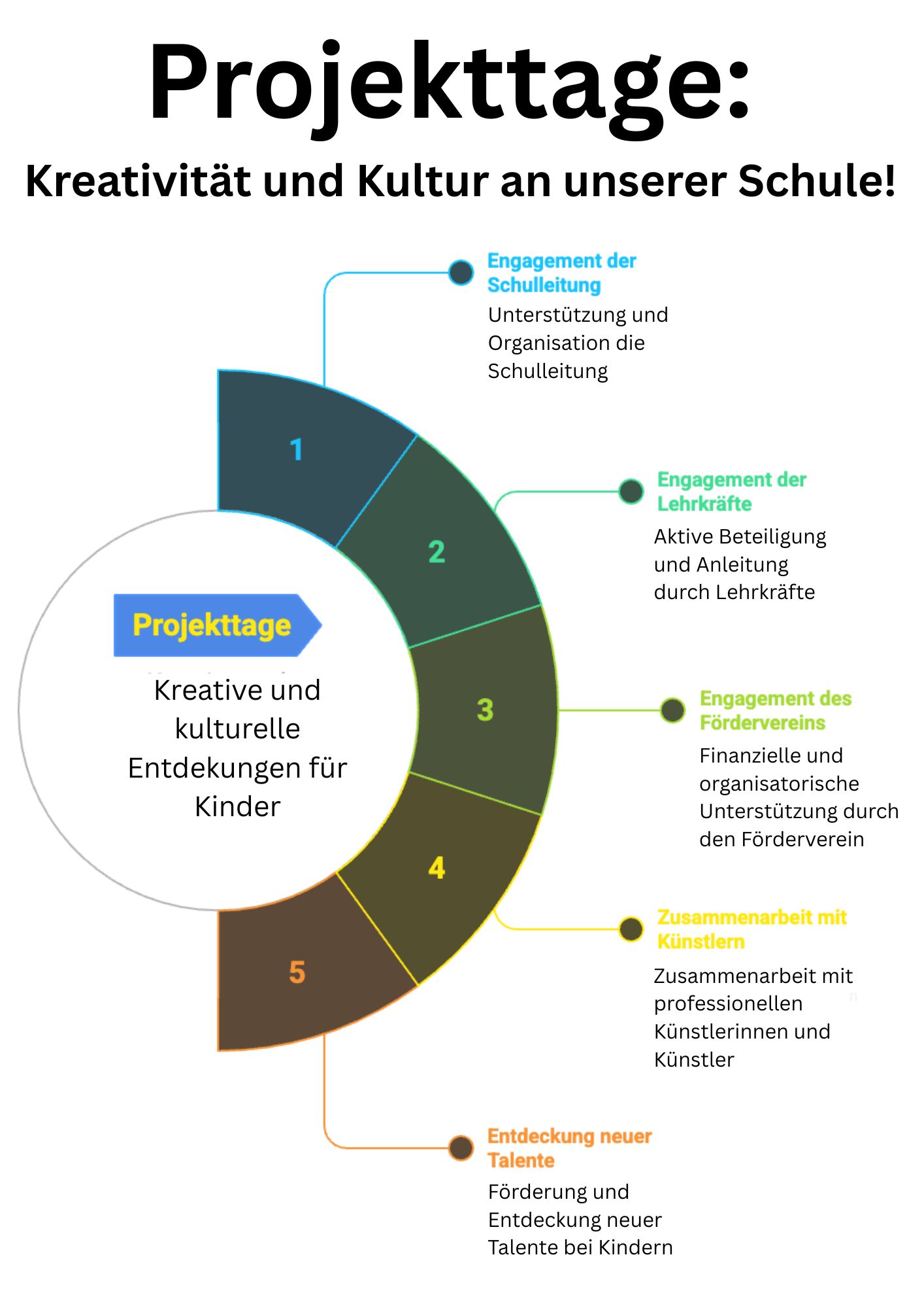 Dieses großartige Projekt wurde durch das Engagement der Schulleitung und Lehrkräfte ins Leben gerufen. Um die Qualität und Vielfalt der Angebote zu ermöglichen, hat die Schule professionelle Künstler eingeladen, die die Kinder mit viel Herzblut begleiten und anleiten.